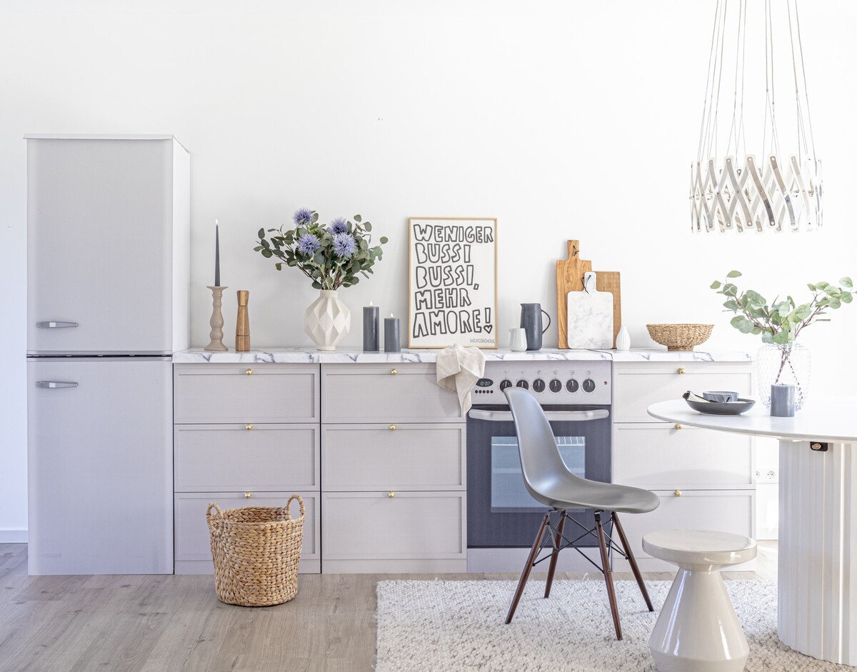 Du sparst bei diesem Set nicht nur Geld - wir legen auch kostenfrei passende Griffe dazu, damit deine Home Staging Küche perfekt aussieht.